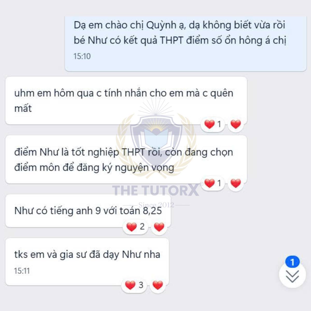 Trong suốt chặng đường hoạt động, Gia sư The TutorX giúp mọi học viên hiểu biết bản thân mình, khám phá những khả năng X bí ẩn của bản thân, tự tin hoàn thành mục tiêu học tập, kỹ năng trong thời gian ngắn nhất. Học viên có tri thức, bản lĩnh chinh phục những cột mốc đáng nhớ trong đời và khai phóng năng lực của bản thân mạnh mẽ nhất.